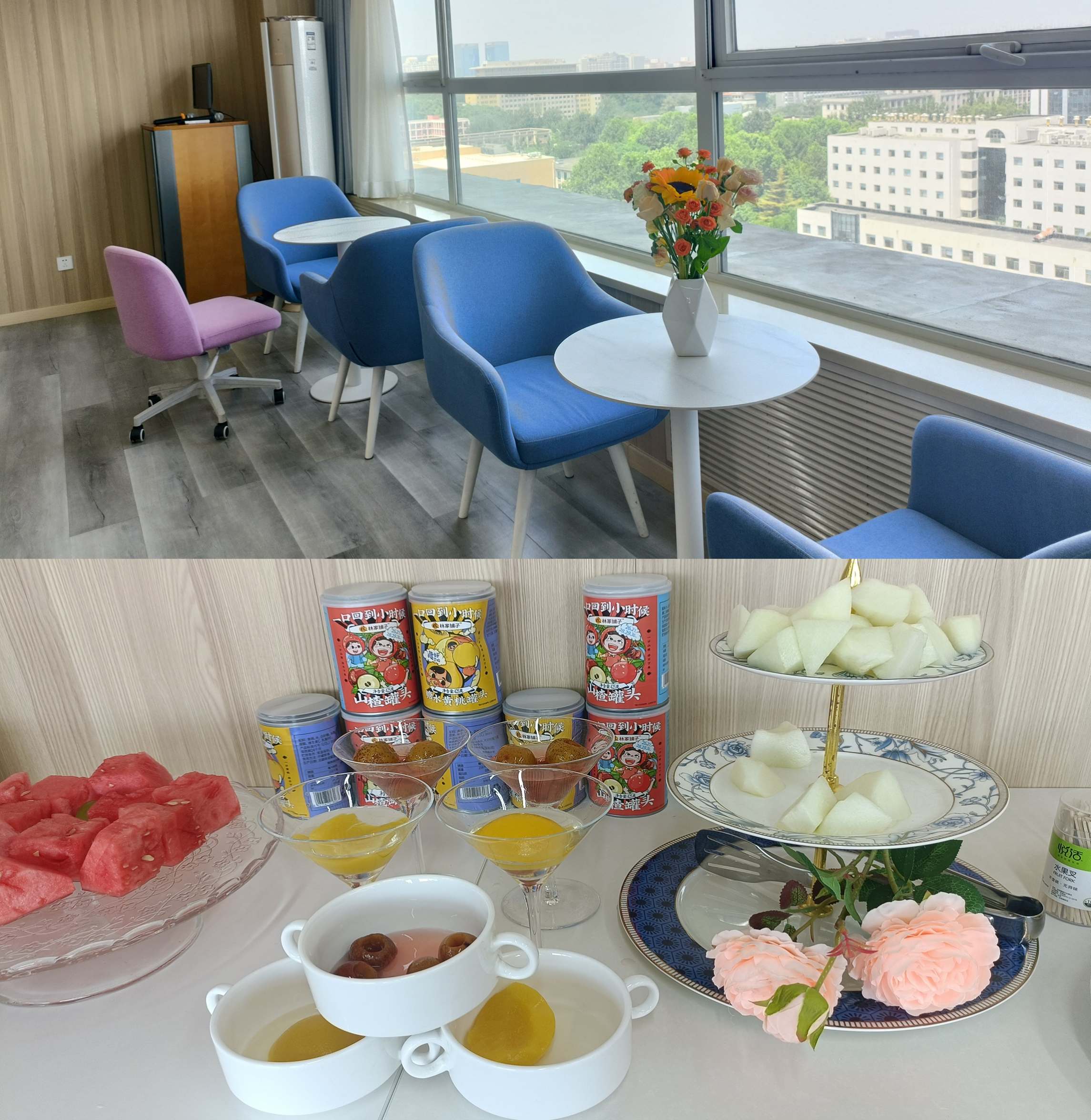 老师们有的信步而至,有的结伴前来,或喝一杯咖啡,或饮一盏清茶,交流教学科研经验,畅谈养生健身心得。窗外,夏日炎炎;室内,温馨悠然。老师们脸上都挂满了笑容,相谈甚欢。