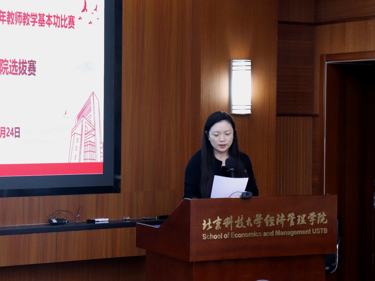 为了提高学院青年教师的教学技能,引导和鼓励青年教师热爱教学、研究教学,锤炼青年教师的教学基本功,经管学院于10月24日下午在经管楼313成功举办第十四届青年教师教学基本功比赛选拔赛,来自不同学科的12名青年教师参加。学院邀请学校教学督导组许纪倩老师、潘永泉老师、戴淑芬老师、学院党委书记武森老师、副院长范小华老师、学院教师发展中心执行主任孙莹老师以及各系教学主任共10位专家评委和来自不同学科专业的12名学生评委。比赛由学院党委副书记、副院长、分工会主席倪宇主持。