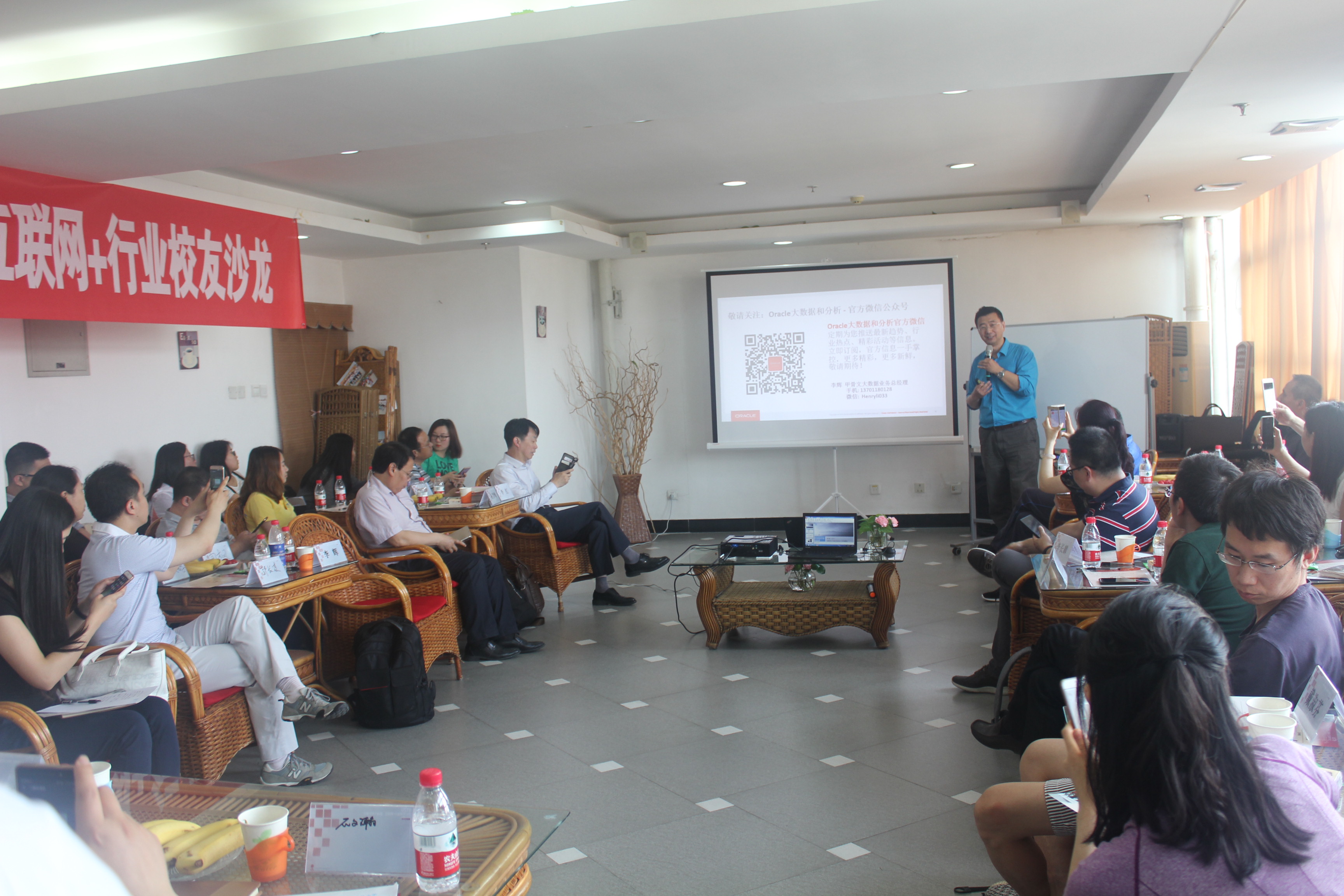 The event was beginning at 2 p.m., hosted by Hong Li, alumnus of 99 class, USTB MBA Alumni president, General Manager of Sinosteel Corporation Information Management Center. Hui Li, General Manager of Oracle Software Systems Inc. Big Data Services in China Region, Hongtao Hu, APU Investment Founding Partner, Qingfeng Yang, Research Center Director of The Journal of New Industrialization shared their views.