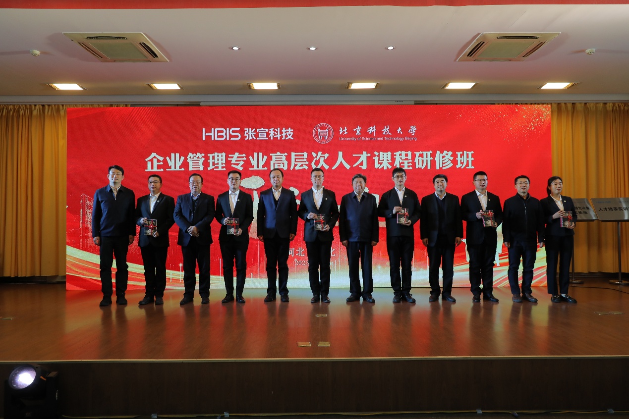 11月13日,校长杨仁树、副校长张卫冬一行赴河北张家口,参加河钢集团张宣科技企业管理专业高层次人才课程研修班开学典礼。张宣科技党委书记、董事长王宏斌,总经理、副董事长、党委副书记郑艾军参加活动。