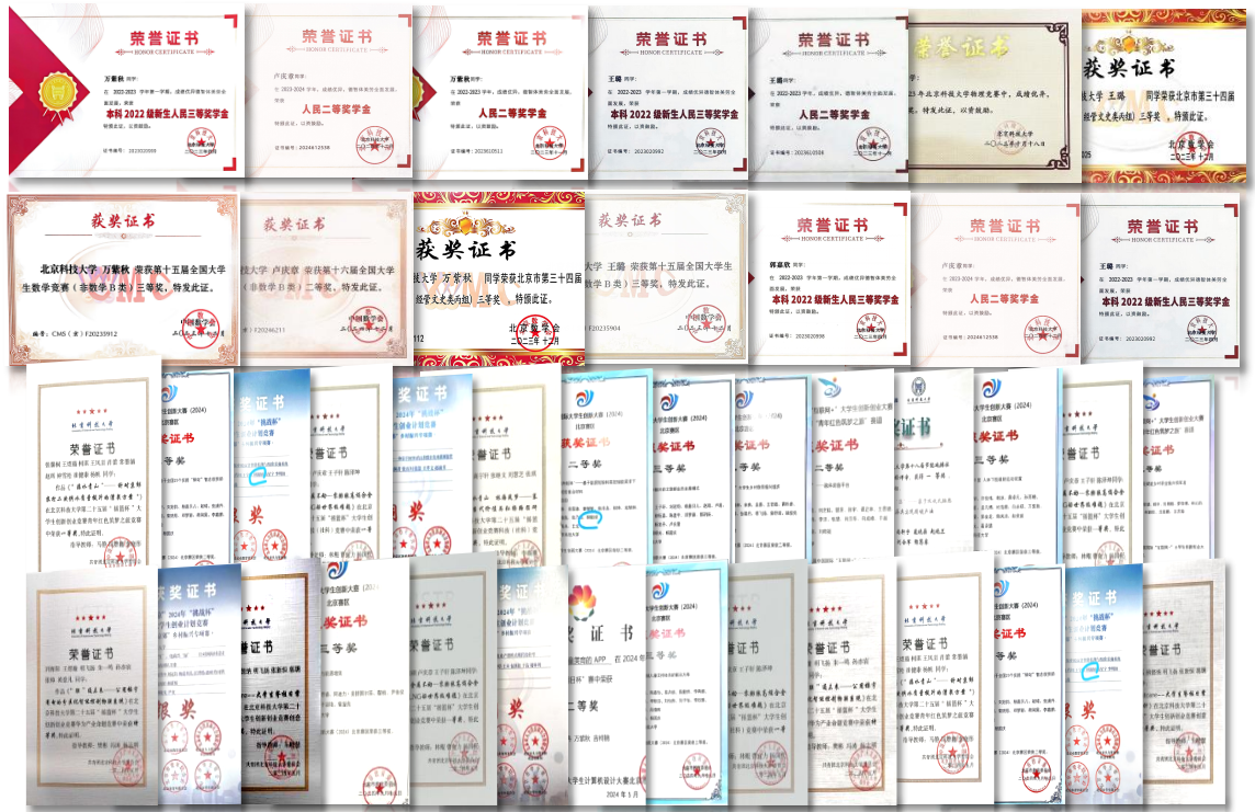 曾获beat365中国唯一官方网站人民三等奖学金、优秀共青团干部、暑期社会实践先进个人,“青创北京”2024年“挑战杯”首都大学生创业计划竞赛金奖等个人荣誉;带领班级获评“先进班集体、优秀团支部标兵”、2023-2024学年秋季学期主题团日优秀团支部,支部党班团协同创新项目入选全校重点项目。