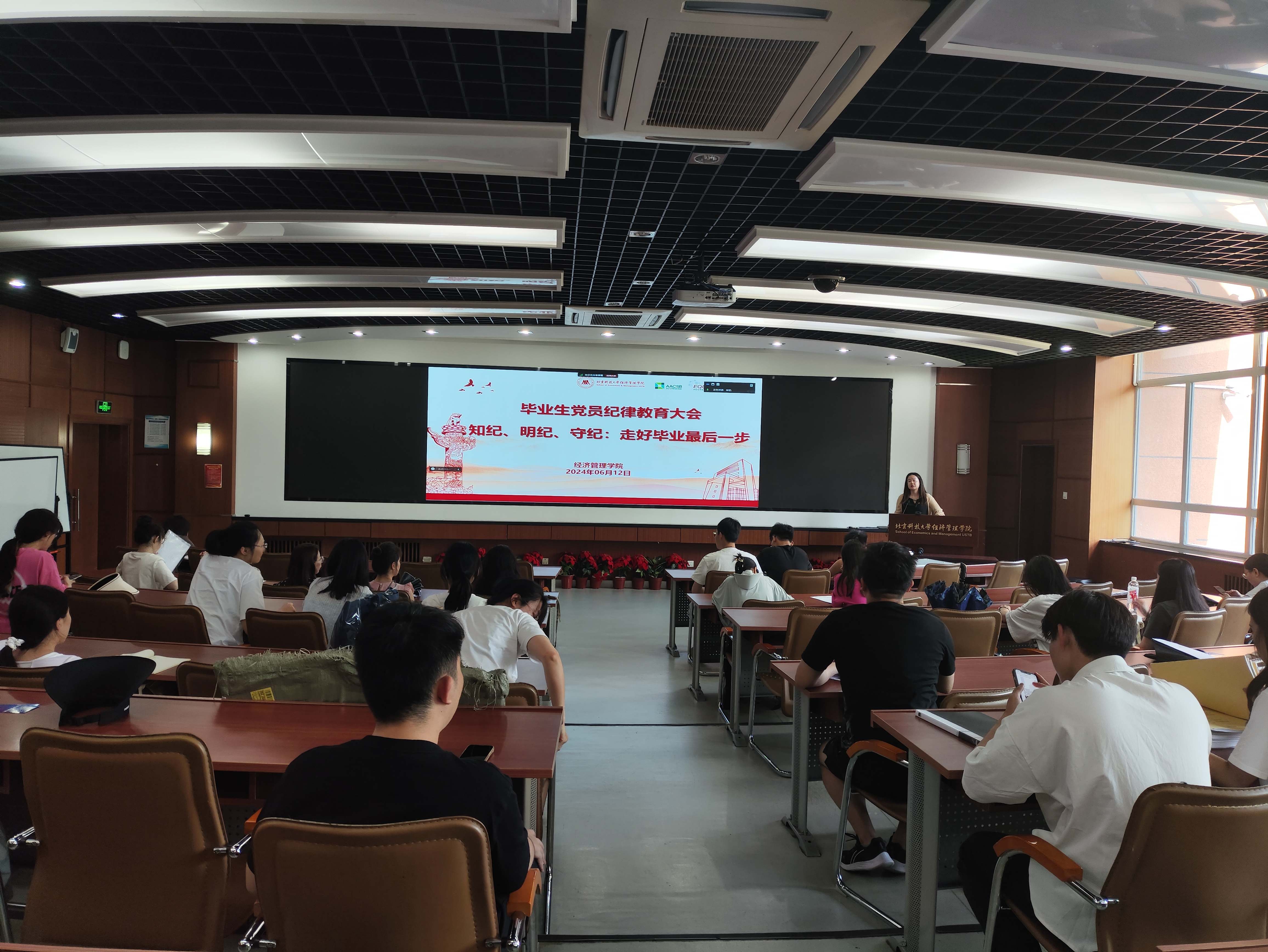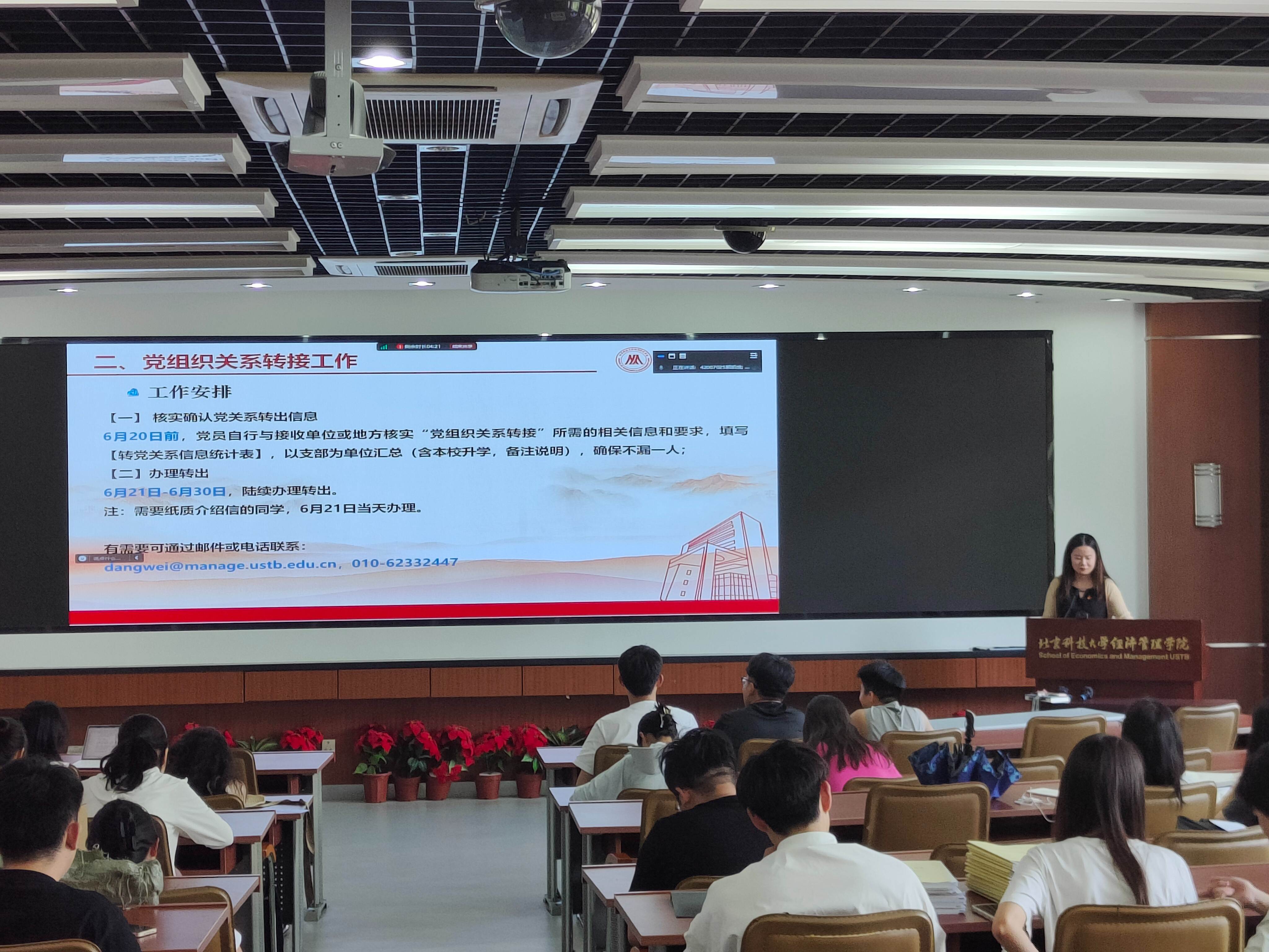 为顺利推进毕业生党组织关系转接,增强党员的政治觉悟和纪律意识,2024年6月12日下午15:30,beat365中国唯一官方网站2024届毕业生党员纪律教育暨组织关系转接培训大会在经管楼313召开。本次大会由学院党委秘书张晓佳主讲,2024届全体毕业生党员参加。
