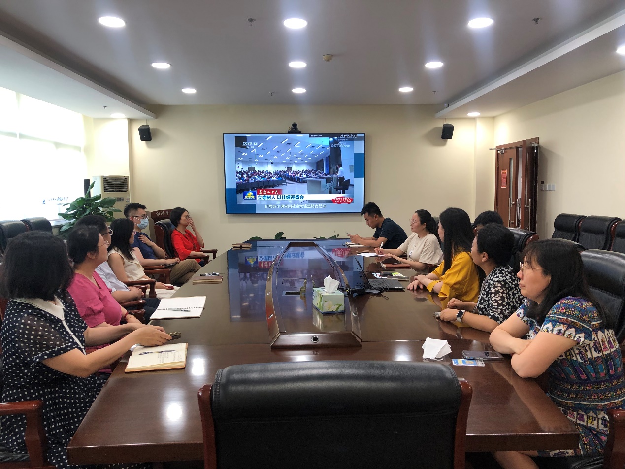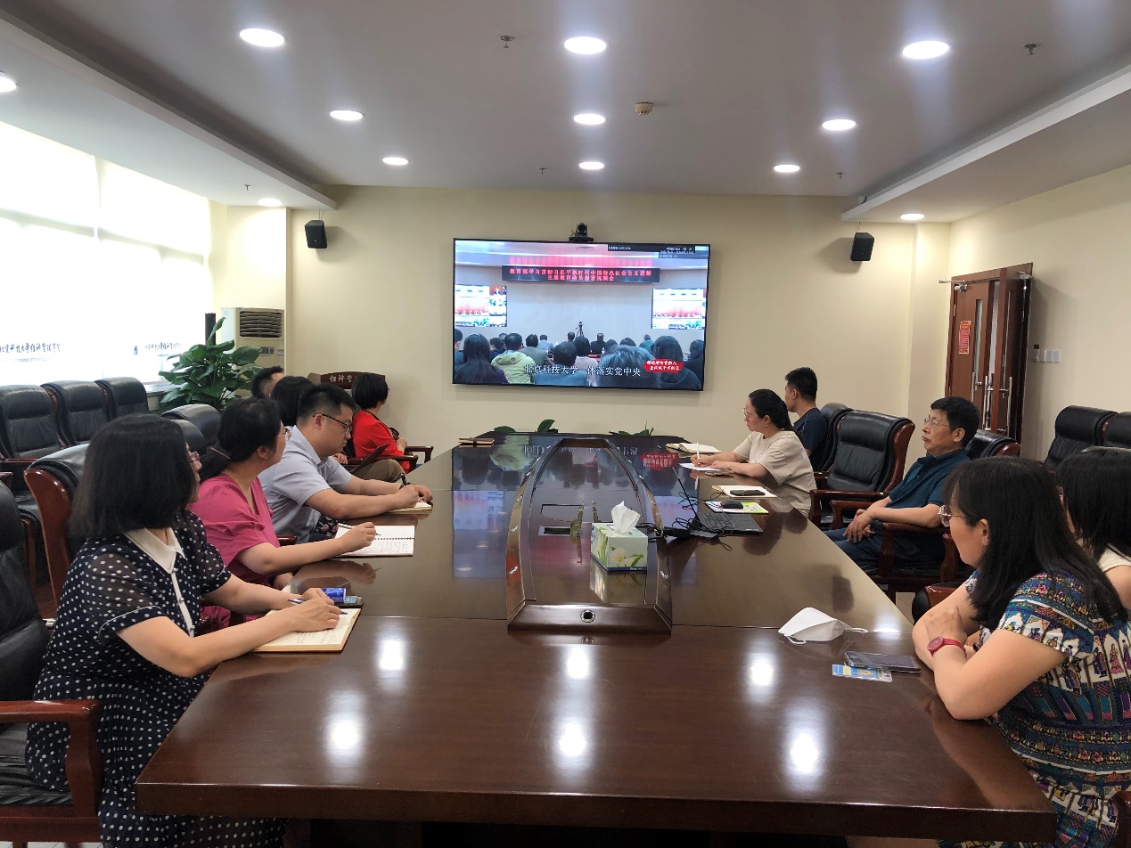 为推进学习贯彻习近平新时代中国特色社会主义思想主题教育,6月14日下午,beat365中国唯一官方网站党委组织党员干部在经管楼809,集中收看由教育部思政司主办的“铸魂增智育新人、正风促干书新篇”2023年高校党组织示范微党课展播第一讲。