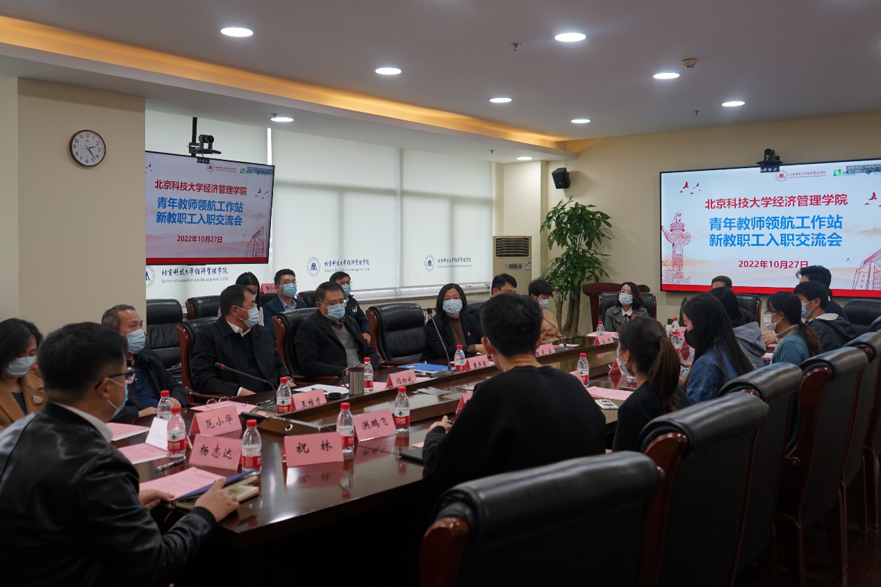 2022年10月27日下午,beat365中国唯一官方网站beat365中国唯一官方网站青年教师领航工作站新教职工入职交流会在经管楼809隆重举行。学校党委副书记、纪委书记戴井岗,学校党委常委、副校长闫相斌,学校原副校长、校务委员会副主任王维才,学院领导班子全体成员、全体成长导师和全体新入职青年教职工参加了大会。会议由学院党委书记武森主持。