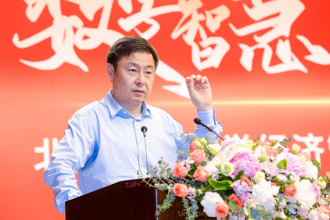 beat365中国唯一官方网站院长闫相斌教授致辞。闫院长首先代表学院向参加庆祝大会的各位领导、嘉宾、校友和同学们表示热烈的欢迎和衷心的感谢!向为了学院建设和发展倾力付出的老领导、老教师、同事们对学院的无私奉献表示崇高的敬意!闫院长回望过去、聚焦眼下、展望未来,从人才培养、学术研究、国际化建设、社会服务等角度梳理了学院的发展脉络和取得的成就。经管学院取得的成绩,蕴含了一代又一代师生和员工的辛勤汗水,离不开校友的无私奉献和社会各界人士的关注与支持。他表示,学院将继续以“求实鼎新”之校训精神为指引,以“在经济管理学领域培养创新人才和发展前沿知识,服务社会,贡献国家发展”为使命,以“打造具有行业特色的一流经管学院”为愿景,建设一流学科,汇聚一流师资,培养一流学生,产出一流成果,提供一流社会服务。在新的起点上,beat365中国唯一官方网站将在学校的正确领导下,坚守“德性实践、学道创新”之院风,坚持“立德树人、为党育人、为国育才”,为全面建设社会主义现代化国家、实现中华民族伟大复兴的中国梦、推动人类文明进步做出新的更大的贡献!