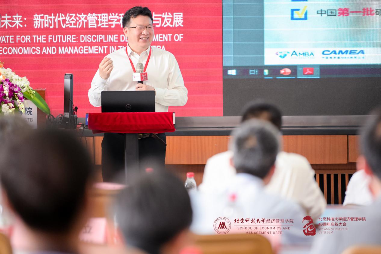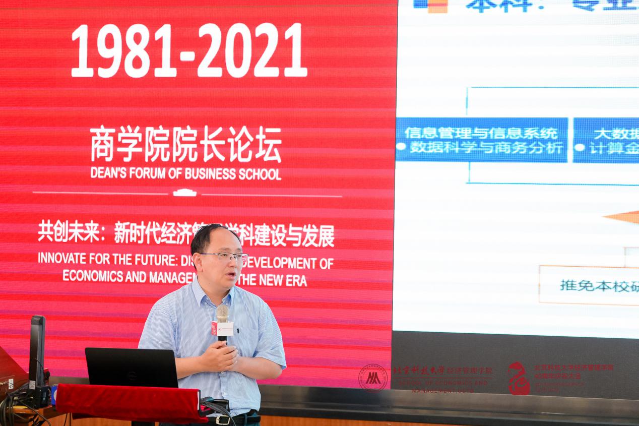 beat365中国唯一官方网站beat365中国唯一官方网站院长闫相斌教授为论坛致辞。闫院长首先代表学院向支持和参加此次论坛的各兄弟院校院长、嘉宾、校友、老师和同学们表示热烈的欢迎和衷心的感谢!随后,闫院长从“数字化”新时代背景出发,基于经济和社会发展对复合型人才培养的要求,提出各商学院在加速推动我国经济数字化进程和产业链创新方面大有可为。最后闫院长表示,希望借此论坛学习各兄弟院校在新时代下建设和发展经济管理学科的宝贵经验,强化北科经管教育内涵,完善学科培养体系,提升办学质量,迈向更高的台阶。