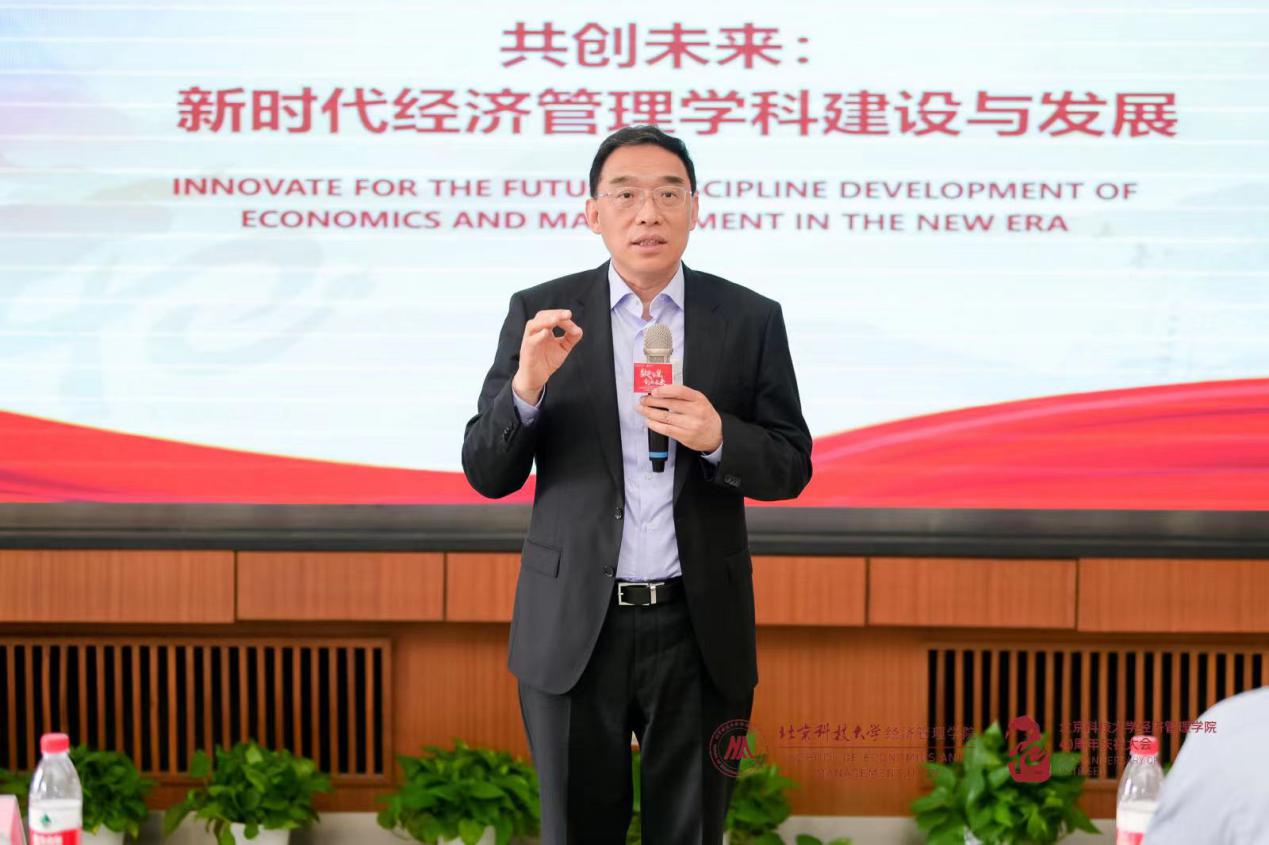 北京师范大学经济与工商管理学院院长戚聿东教授谈到,作为新文科建设“主战场”的经管学科领域,面临着重大机遇与挑战。他首先分析了数字经济的运行特征及发展态势,随后介绍了新文科建设的三大抓手与关键突破以及“六卓越一拔尖”计划2.0。最后,结合北师大的做法,从学科专业优化和面向数字经济时代的“三好”教师队伍建设两方面探讨了了新文科建设背景下的经管拔尖人才培养问题。